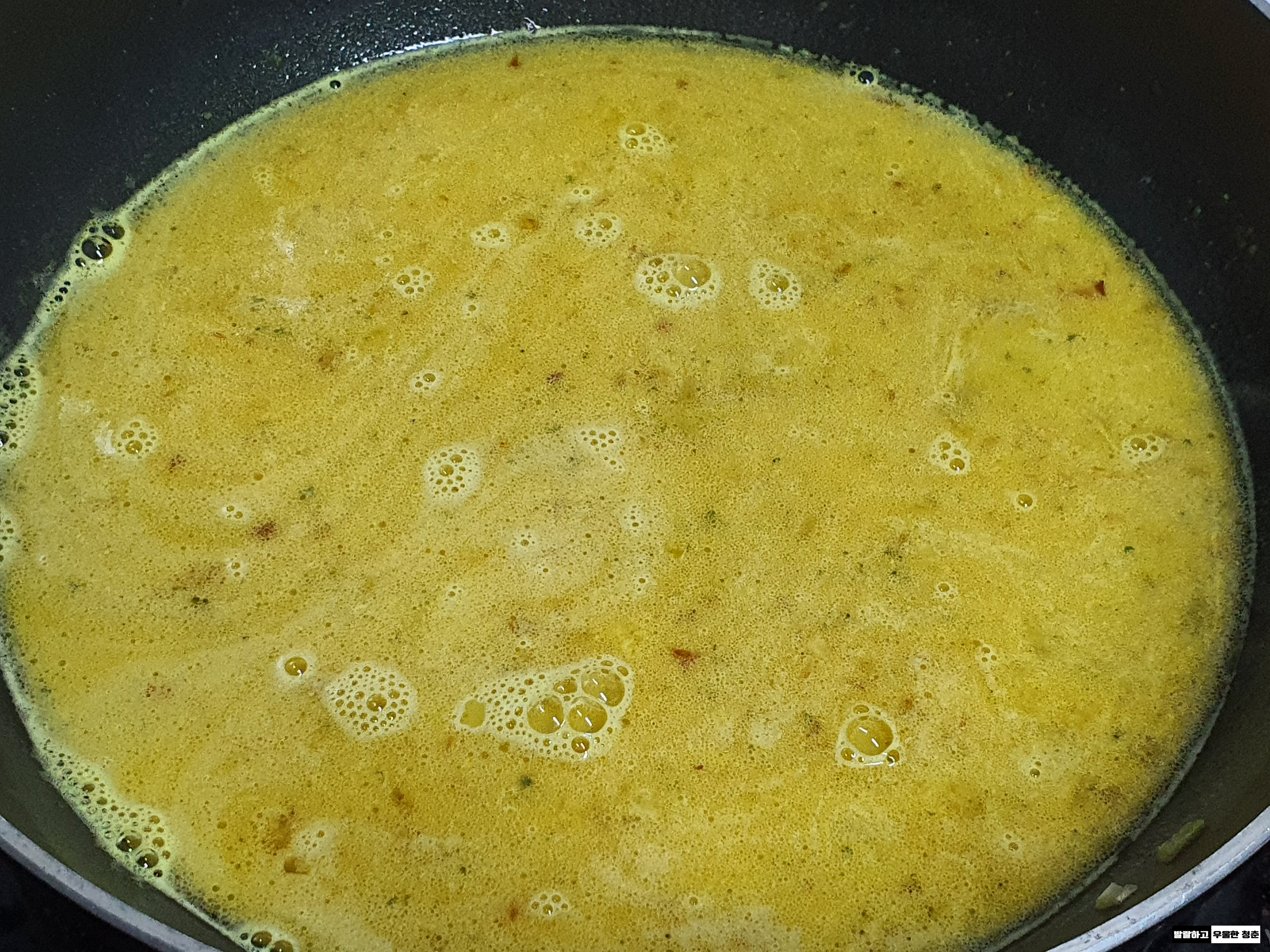 한소끔 끓어오른 후 티아시아키친 푸팟퐁커리를 넣고