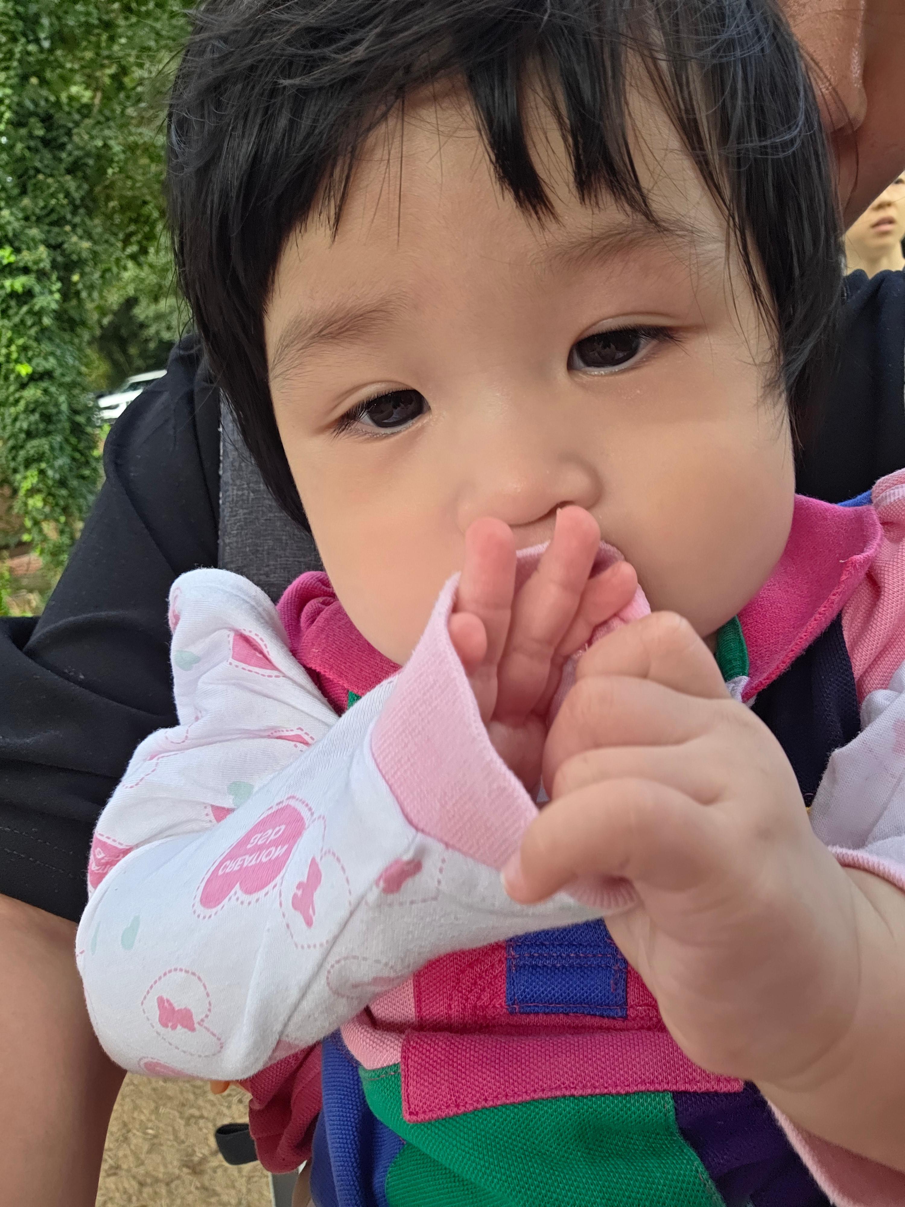 아기띠에 있는 동생이 귀여운 우리 첫째