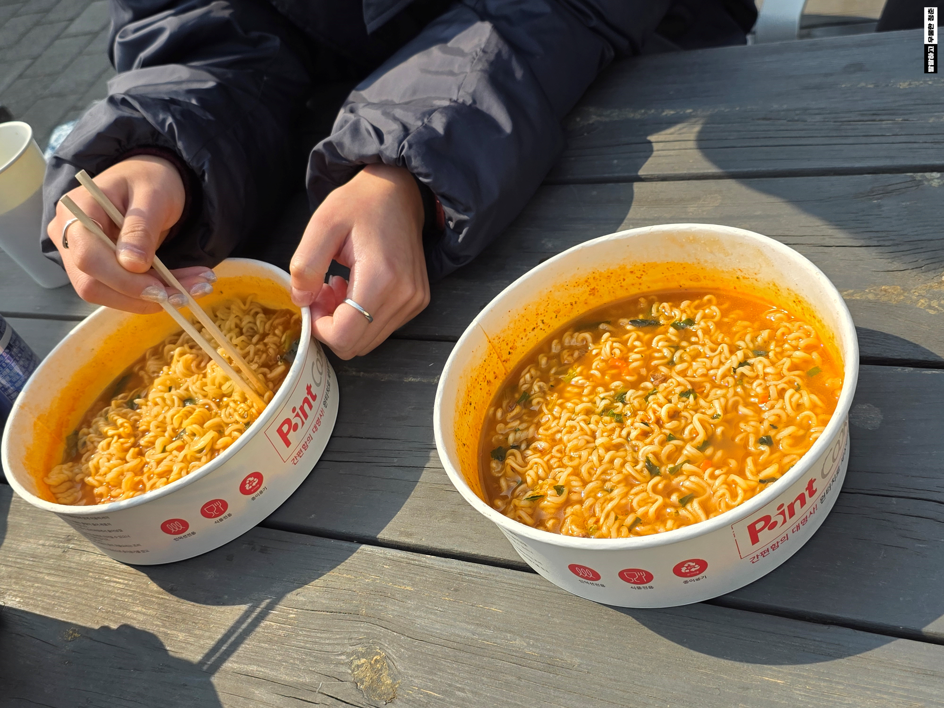 이게 바람이 살짝 싸늘해서 라면 국물 먹으니 정말 행복했다
