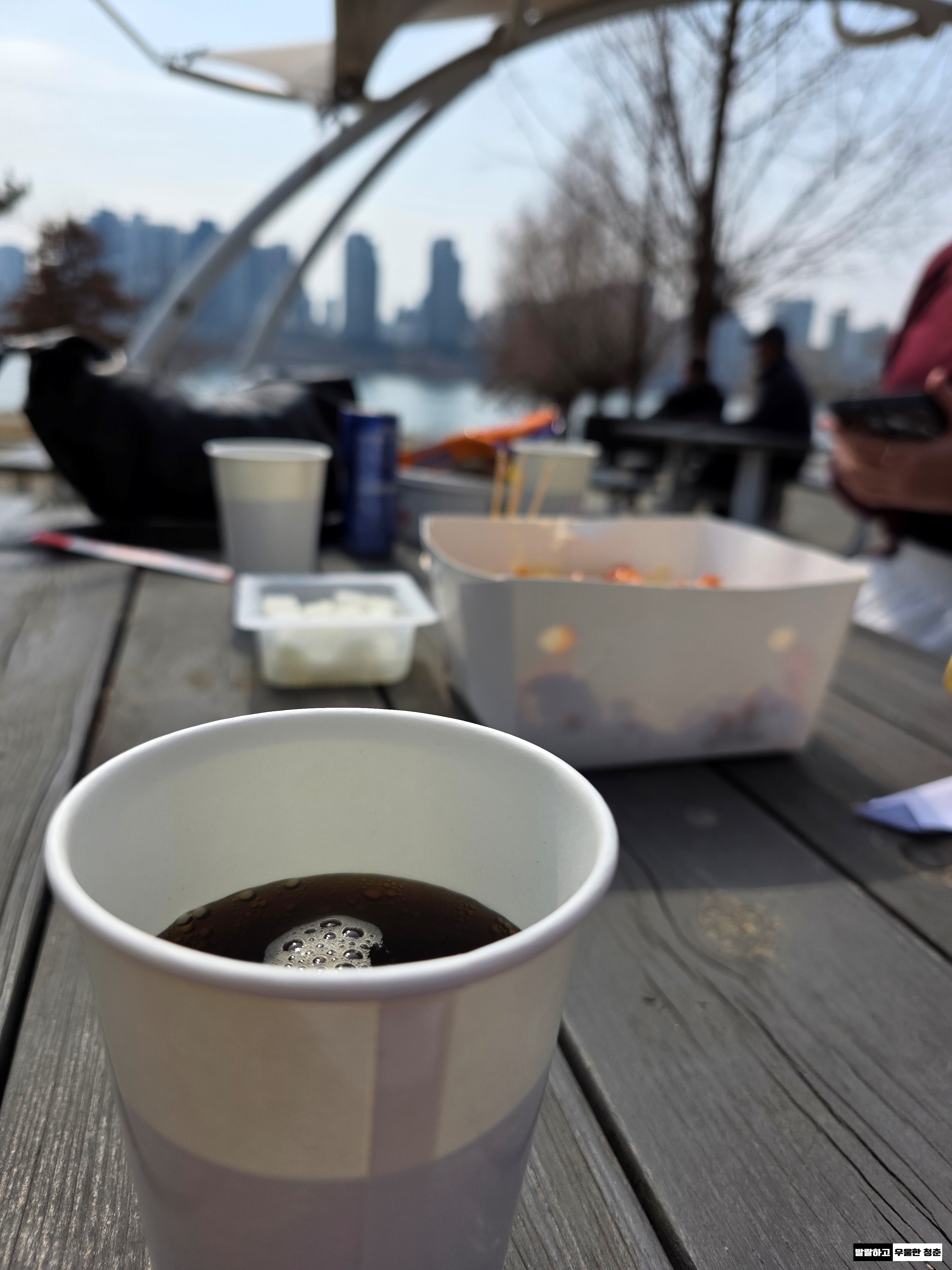 한강 라면을 들고 아까 우리가 자리 잡아 둔 곳으로 돌아왔다